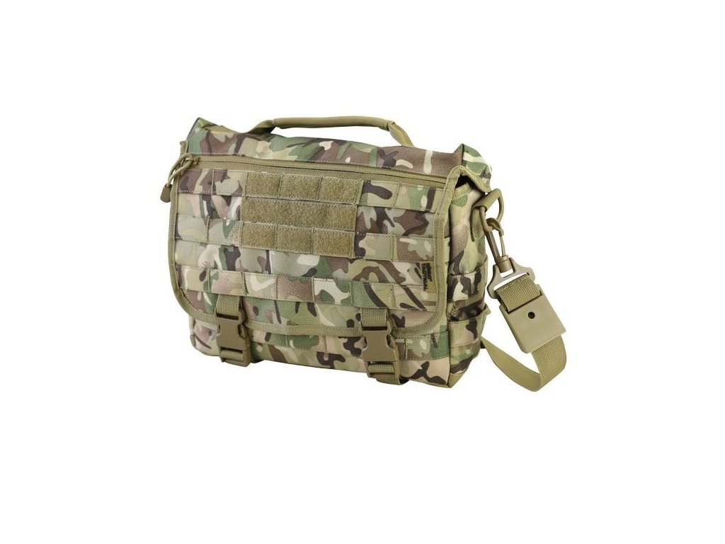 Taktická taška cez rameno s MOLLE/PALS väzbou v prednej i zadnej časti. Na zatváracej chlopni je jednak zips, ktorým sa dostanete do plochého administračného vrecka a ďalej velcro panel pre prichytenie nášiviek so suchým zipsom. Nastaviteľný ramenný popruh je polstrovaný, takže aj pri väčšom zaťažení tašky vás nebude tlačiť do ramena. Popruh je možné pomocou karabiniek odopnúť a tašku nosiť v ruke.