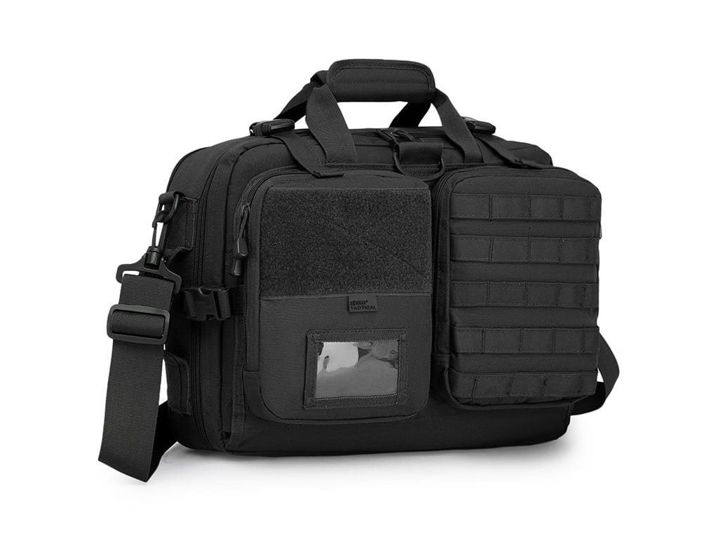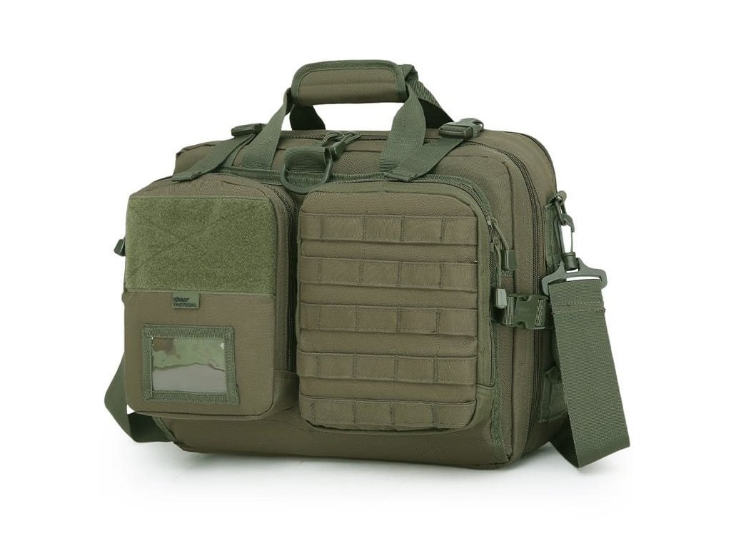 - Dve predné vrecká so zapínaním na zips. Ľavé obsahuje ďalšie vnútorné vrecko a zvonku panel so suchým zipsom a ID okienko. Pravé vrecko zvnútra obsahuje krúžok na pracke na uchytenie vybavenia a zvonku ponúka MOLLE väzbu.
