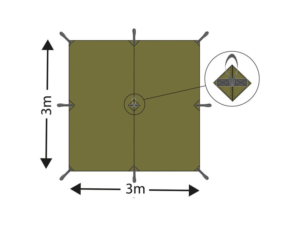 Viacúčelová odolná plachta/celta, ktorá môže slúžiť ako dočasný prístrešok, stačí kovovým okami prevliecť povraz a plachtu vypnúť napríklad medzi stromami. Alebo pod ňou môžete schovať veci, ktoré nechcete, aby v daždivom počasí premokli. Skladná, dodávaná v transportnom vrecúšku.