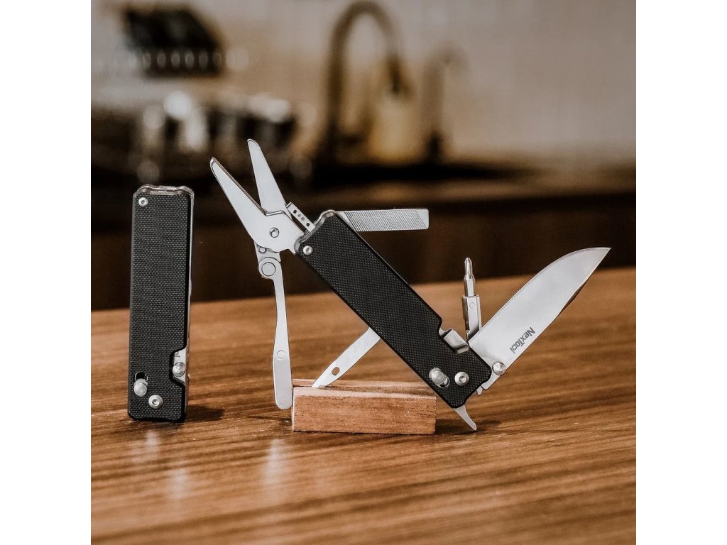 Model K30 je navrhnutý pre moderné každodenné nosenie a okrem noža ponúka aj nožnice, otvárač na fľaše, páčidlo, pinzetu, pilník, prevliekač a magnetický systém vymeniteľných skrutkovacích bitov. Vylepšený systém NEX Scissors System 2.0 so zúbkovaným ostrím poskytuje silnejší a stabilnejší strih, takže zvládnete bežné úlohy bez potreby meniť nástroje.