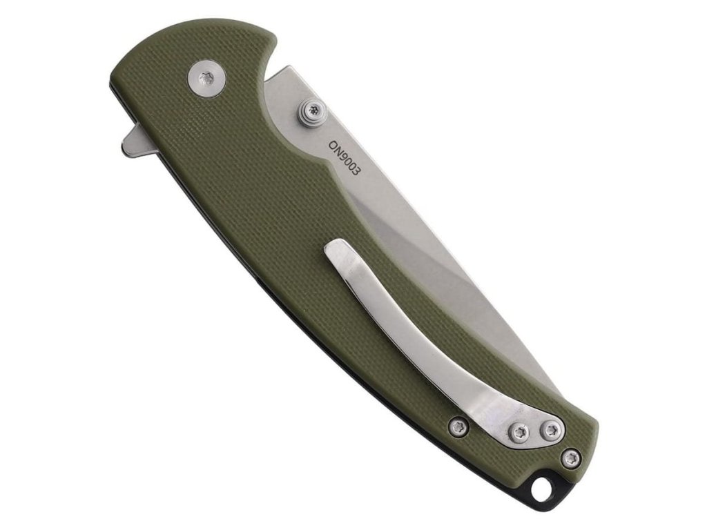 Jednoduchý zatvárač ladných tvarov a čistej konštrukcie od preslávenej značky ONTARIO. Čepeľ s hladkým ostrím a matnou povrchovou úpravou stonewash je vyrobená z nerezovej ocele. K ľahkému otváraniu pomocou jednej ruky je nôž opatrený flipperom a obojstranným kolíkom na čepeli. O bezpečné používanie noža sa stará poistka ButtonLock, ktorej ovládací prvok nájdete na hornej časti rukoväte. Rukoväť samotná je anatomicky tvarovaná a jej črienky sú vyrobené materiálu G10 s protišmykovou úpravou. Materiál G10 sa vyznačuje mimoriadnou pevnosťou a disponuje skvelou priľnavosťou aj v extrémne náročných podmienkach, pod vodou a pod. V neposlednom rade je G10 perfektným elektrickým izolantom a výborným tepelným izolantom v horúčave aj chlade. Na konci rukoväte nájdete mierne zakrivený vreckový klip a otvor na prevlečenie poistnej šnúry.