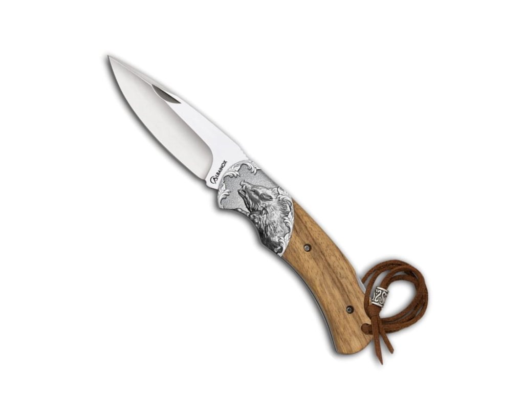 Nôž zatvárací reliéf hlava DIVIAKA črienky drevo hladké ostrie