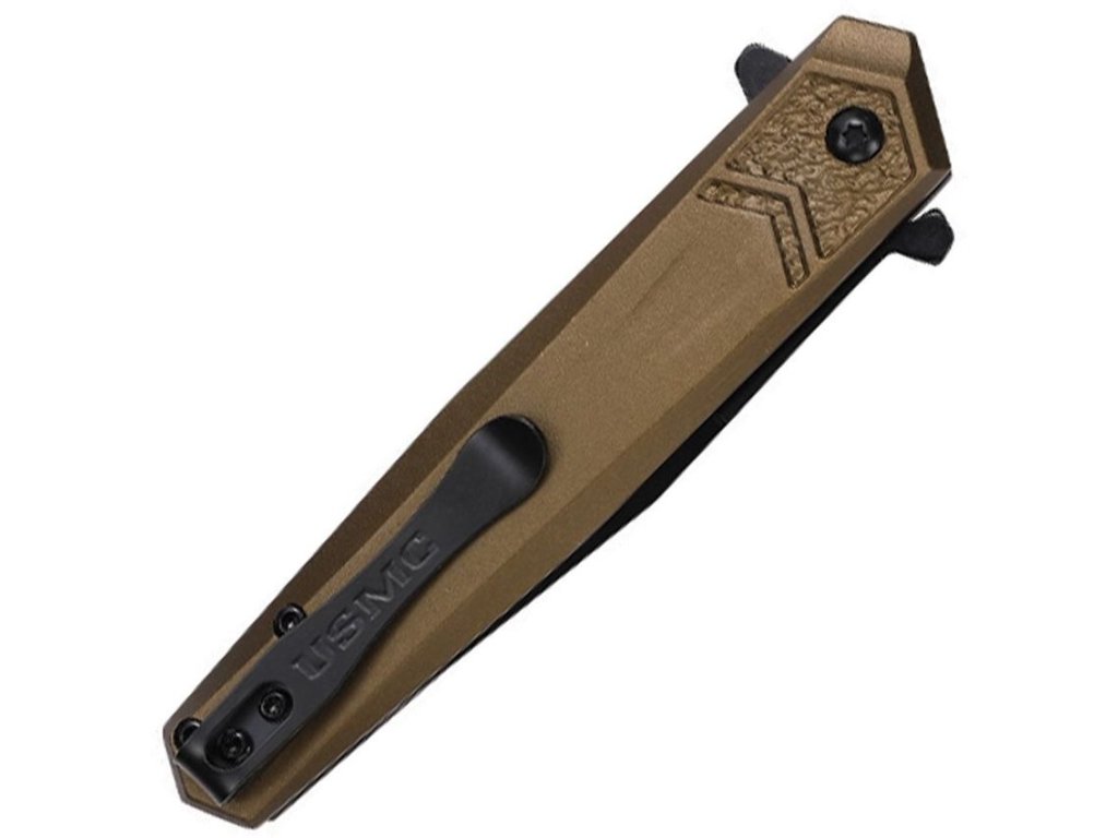 Kompaktný zatvárač s asistovaným otváraním opatrený logom USMC a nápisom MARINES na čepeli. Čepeľ s hladkým ostrím je vyrobená z nerezovej ocele 3Cr13Mov a v otvorenom stave je istená pomocou obľúbenej poistky Linerlock. Na rýchle otvorenie môžete využiť aj integrovaný flipper. Na výrobu rukoväte bol použitý ľahký hliník. Samozrejmosťou je vreckový klip pre ľahké prenášanie vo vrecku.