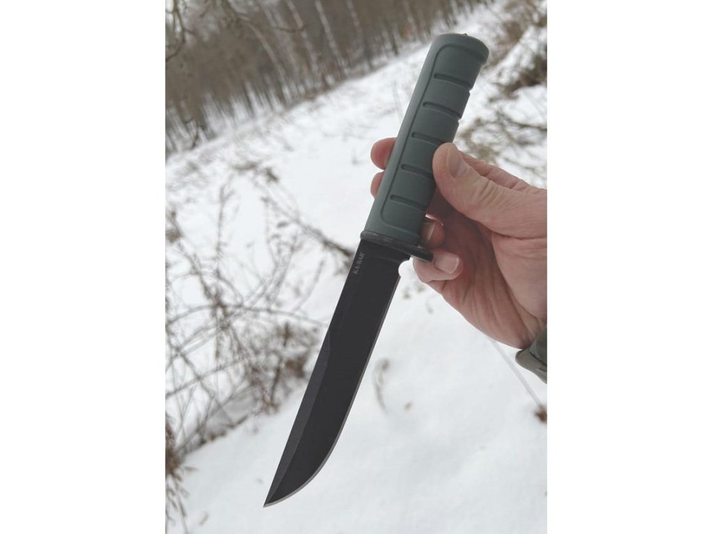 Robustný nôž s pevnou čepeľou určený pre náročných užívateľov. Čepeľ s hladkým ostrím je vyrobená z odolnej nástrojovej ocele D2 s čierneným práškovým povrchom zlepšujúcim mechanickú odolnosť. Rukoväť s protišmykovým povrchom je vyrobená z materiálu GFN, čo je nylon zosilnený pomocou skleného vlákna. Predná časť rukoväte disponuje ochrannou záštitou, v zadnej časti nájdete hrot použiteľný na bezpečné rozbíjanie skla či k improvizovanej sebaobrane. K nožu je dodávané opaskové puzdro kompatibilné s modulárnym systémom MOLLE/PALS. Produkt je tak možné ľahko pripevniť k celému radu kompatibilného taktického vybavenia, či už sa jedná o batohy, chest rigy, nosiče plátov a pod.