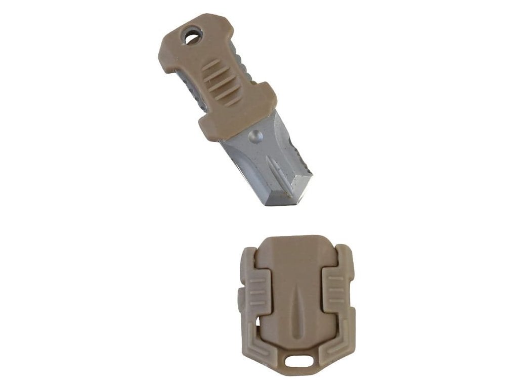MOLLE/PALS kompatibilný mikro nôž s hladkou aj pazúrikovou čepeľou. Čepeľ noža je iba 2,5 cm dlhá a na jej výrobu bola použitá nerezová oceľ so šedým povlakom. Rukoväť je plastová a tvarovaná tak, aby napriek minimálnym rozmerom poskytovala pevný a bezpečný úchop. Vďaka dodávanému plastovému puzdru je celý nožík ľahké pripevniť ku kompatibilnému vybaveniu, poprípade môžete využiť otvor na pripevnenie poistnej šnúry a zavesenie noža na krk.