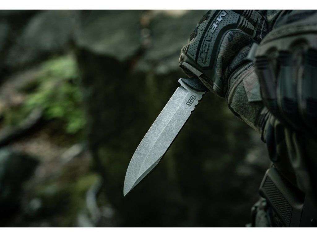 Tento odolný taktický nôž sa vyznačuje 15 cm čepeľou, profilom Clip-Point a konštrukciou Full Tang. Jeho kľúčovým prvkom je čepeľ vyrobená z najkvalitnejšej švédskej ocele Sleipner, profesionálne tepelne upravenej. Rukoväť z laminátu G10 zaisťuje ergonómiu a odolnosť. Súprava obsahuje puzdro z odolného ABS plastu, ktoré je možné pripevniť na opasok alebo vybavenie. Nôž je vyrobený z jedného kusu švédskej nástrojovej ocele Sleipner, ktorá je vysoko odolná voči oderu, prasklinám a odštiepeniu, ako aj so zlepšenou odolnosťou proti korózii.