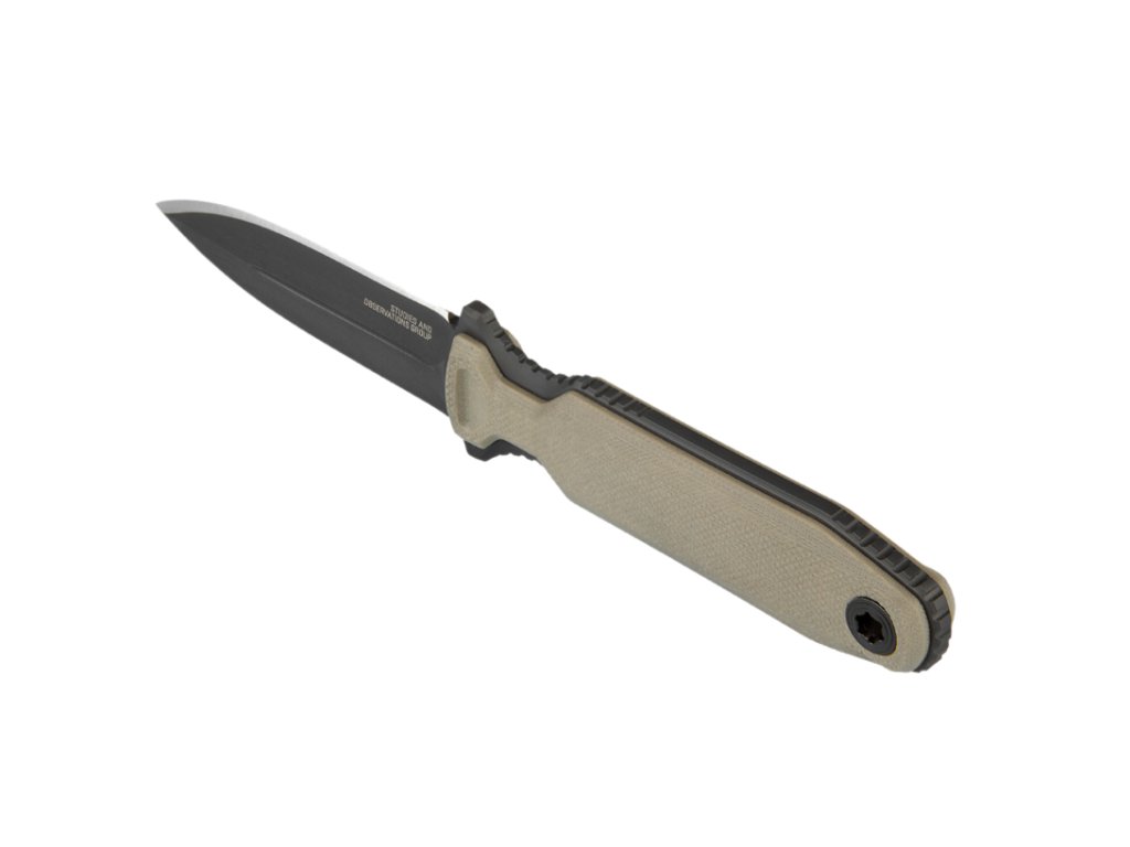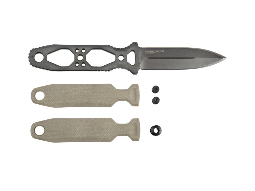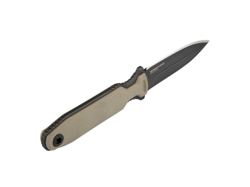 Odnímateľný systém plášťov Pentagonu FX nie je jedinou vecou, ktorá sa dá prispôsobiť. Rukoväť je možné úplne odopnúť a získať tak štíhlejší profil. Pevný nôž Pentagonu FX je plný Full Tang.