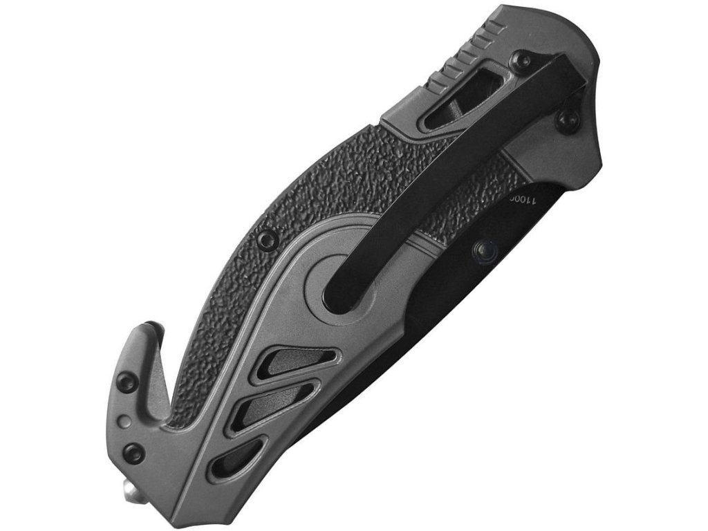 Štýlovo vyzerajúci zatvárač s integrovaným rezákom pásov. Čepeľ noža v tvare drop point disponuje kombinovaným ostrím a obojstranným kolíčkom pre ľahké otváranie jednou rukou. Na jej výrobu bola použitá nerezová oceľ 8Cr13MoV s výrazným čiernením a v otvorenom stave je istená spoľahlivou poistkou LinerLock. Rukoväť je z hliníka a je opatrená gumovými prvkami zlepšujúcimi úchop. Nájdete na nej tiež už spomínaný rezák pásov, volfrámový bodec na prerážanie skla a kovový vreckový klip.
