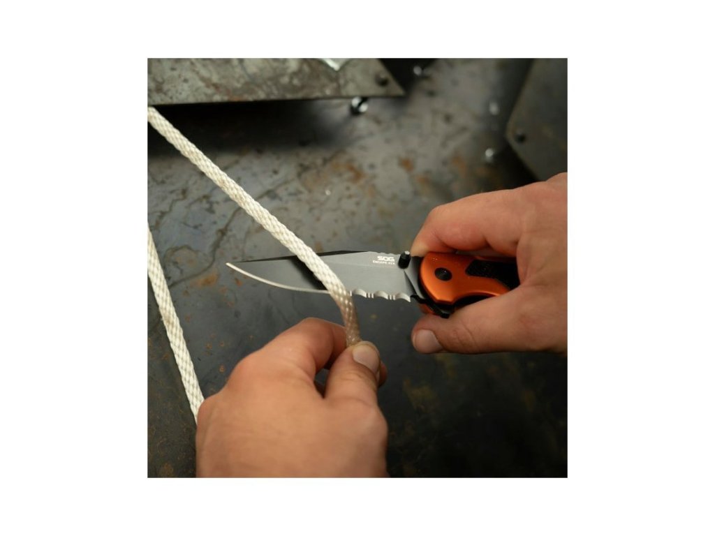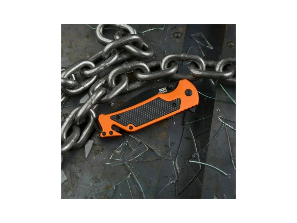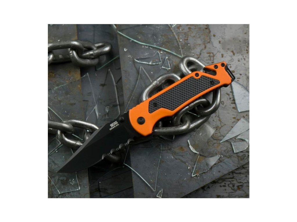 Escape ATK 2.0 od SOG je záchranársky nôž na každodenné nosenie (EDC). Nôž pre všetkých čo vedia, že svet je stále komplikovanejší a chcú sa pripravovať na neočakávané situácie. Stredne veľký nôž s Clip Point čepeľou, plochým výbrusom a zubami v zadnej časti ostrie poskytne maximálny rezný účinok. Hliníková rukoväť s gumovými vložkami zase pevný úchop. Ďalšími záchranárskymi funkciami je rozbiješ sklá a čepeľ na rezanie pásov. O bezpečnosť sa stará linerlock poistka a pri otváraní noža Vám pomáha asistent otvárania.