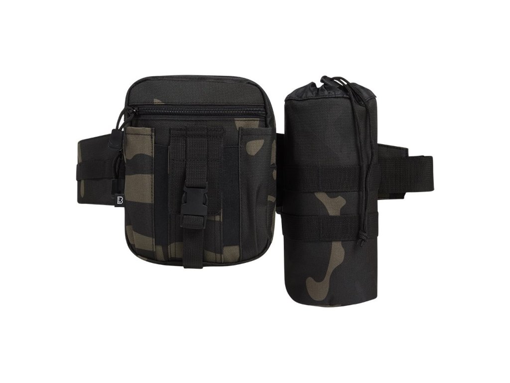 Odolná ľadvinka kombinovaná s taktickým opaskom a puzdrom na fľašu. Všetky tri produkty sú vyrobené z 600D polyesteru, ktorý ponúka skvelý pomer odolnosti a nízkej hmotnosti.