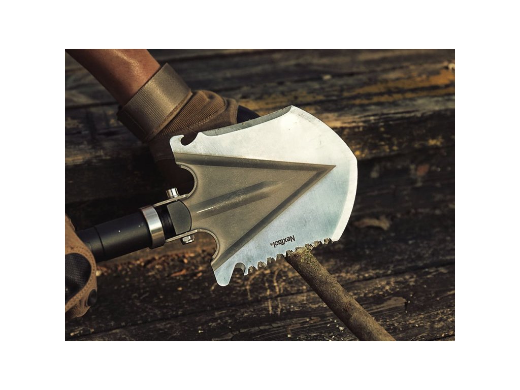 Lopatu je možné použiť ako hák po nastavení uhla na 30°, čo uľahčuje zachytenie konárov stromu za účelom zapálenia ohňa vonku.