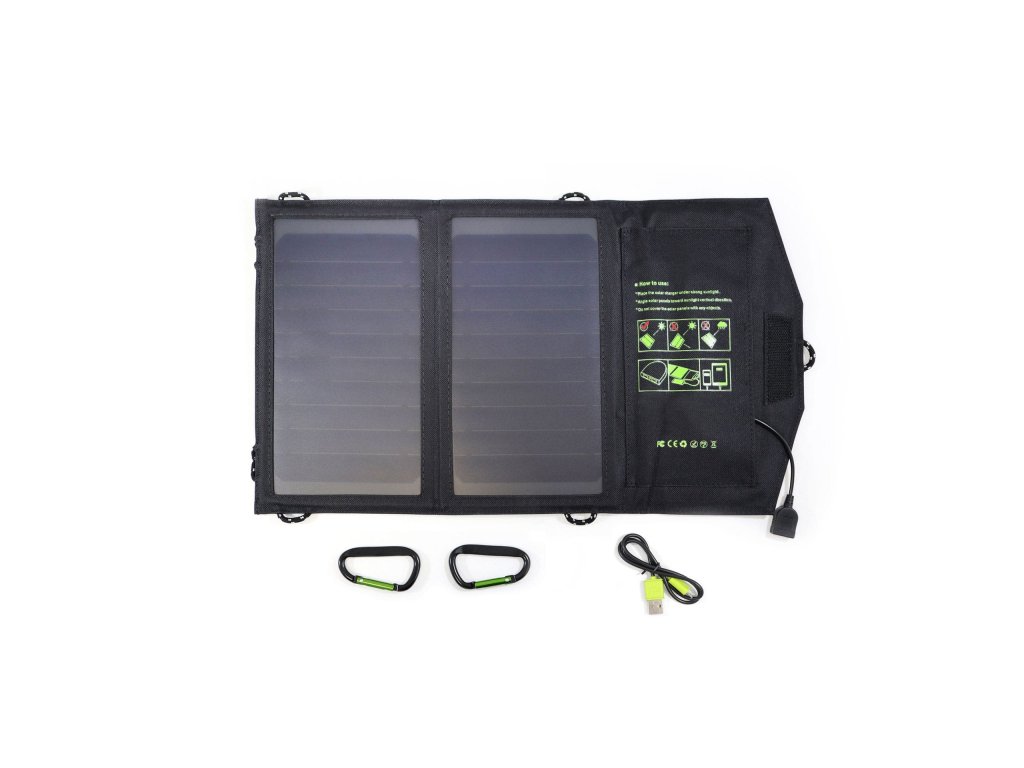 Kompaktný a ľahký 2dielny solárny panel ponúka nezávislú možnosť nabíjania akumulátorových zariadení s USB pripojením, ako sú chytré telefóny, tablety a powerbanky. Vysoko kvalitné a účinné monokryštalické kremíkové články dosahujú vysokú účinnosť a poskytujú stabilný prúd pri dobrom slnečnom svite. Ľahký a kompaktný dizajn zaisťuje ľahkú manipuláciu a transport – stačí panel rozložiť a nasmerovať čo najkolmejšie na slnko.