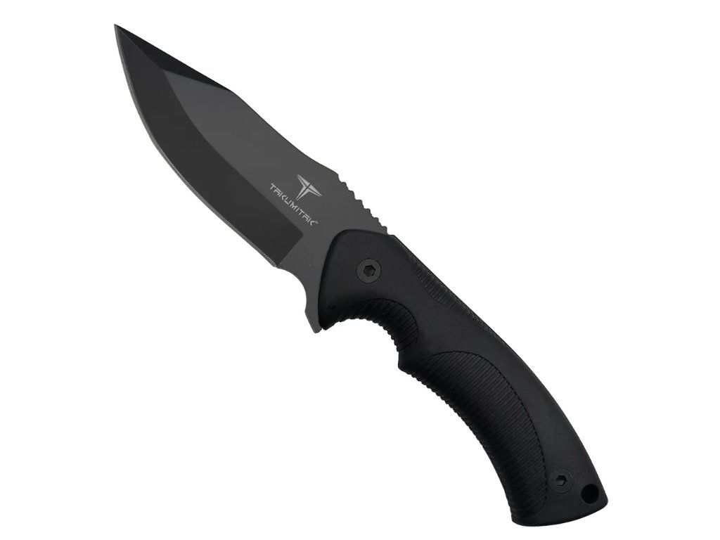 Nôž Takumitak Fit - Black/Coyote má pevnú čepeľ s konštrukciou full tang, čo znamená, že tang prechádza po celej dĺžke rukoväte. Ergonomicky tvarovaná rukoväť s výraznou drážkou pre prsty slúži ako chránič, zvyšuje bezpečnosť a zaisťuje stabilný úchop.