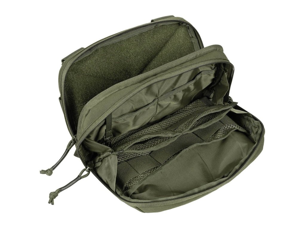 - Predná strana s vreckom na zips a nasúvacím vreckom so suchým zipsom a pútkami Molle na vonkajšej strane