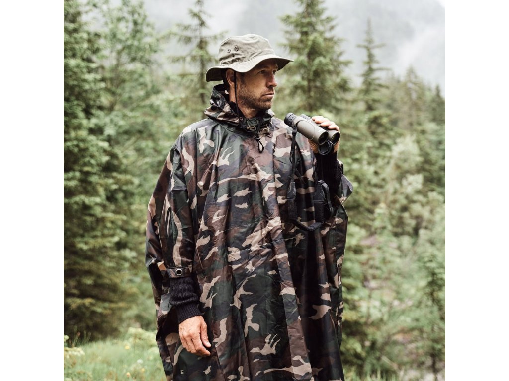 Odľahčené pončo vyrobené z robustného polyesterového materiálu v rip-stop úprave. Pončo je vybavené ôsmimi cvočkami a šiestimi kovovými prievlakmi, vďaka ktorým môžete pončo v prípade potreby použiť ako plachtu alebo s jeho pomocou vybudovať improvizovaný prístrešok. Kapucňa ponča je hlboká a nastaviteľná pomocou šnúrky s plastovou brzdičkou. Pončo je dodávané s prepravným obalom.