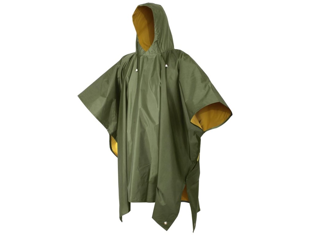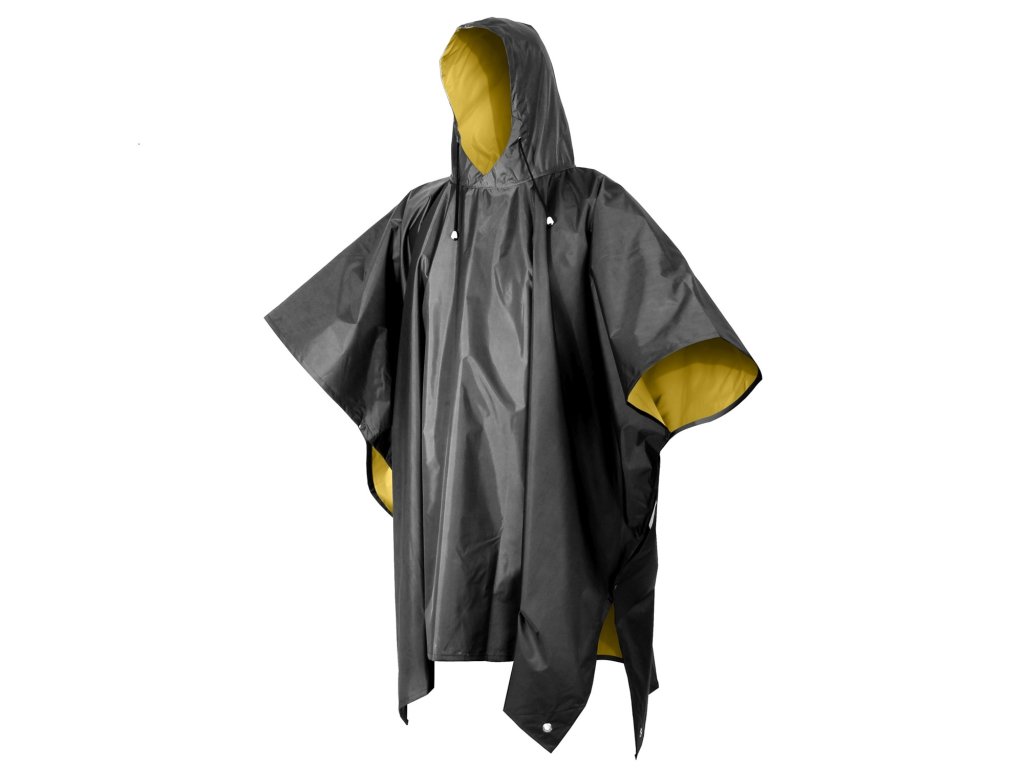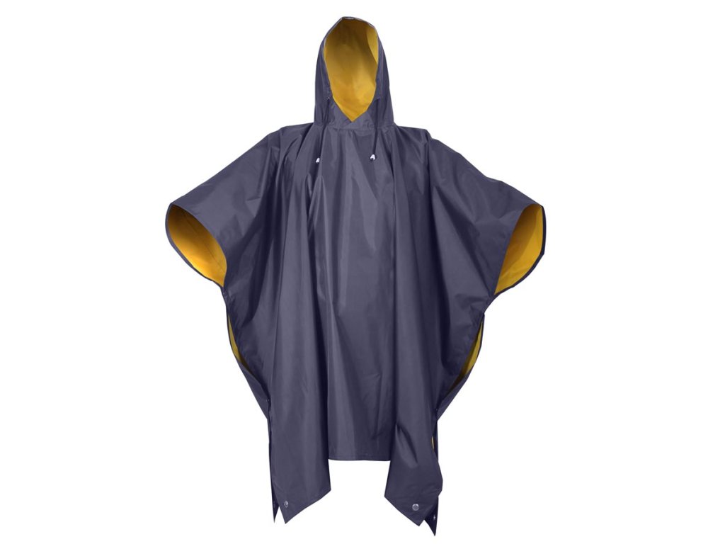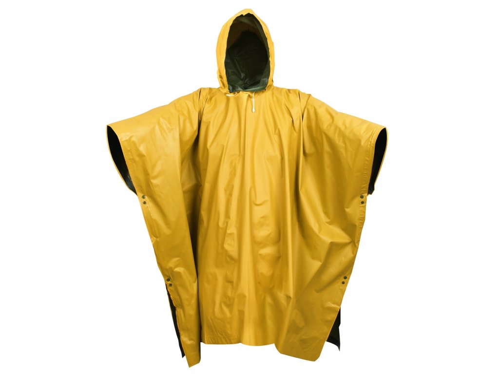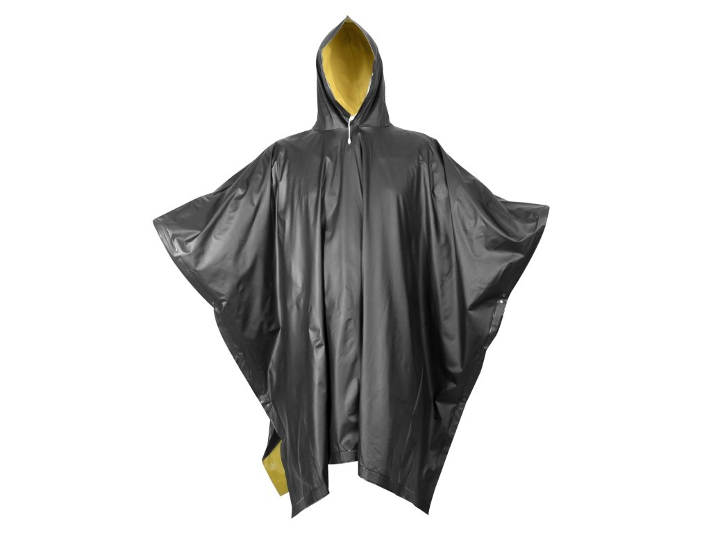 Obojstranné nepremokavé pončo zo silného PVC. Kapucňa so sťahovacou šnúrou, zapínanie na patentky. Rozmer cca 130 x 200 cm.