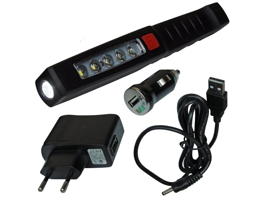 Praktické nabíjacie pracovné svietidlo vybavené silným magnetom pre možnosť fixácie na kovové povrchy. Na dosiahnutie maximálneho výkonu 150 lúmenov svietidlo využíva celkom päť vertikálnych LED žiariviek a jednej CREE LED žiarivky v prednej časti svietidla. O napájanie sa stará Li-ion batéria ponúkajúca výdrž cca 4 hodiny. Telo je vyrobené z odolného ABS plastu a nájdete na ňom jednoduchý klip pre možnosť zavesenia a pogumované tlačidlo na zapnutie a vypnutie. Dodávané s nabíjačkou a adaptérom do auta.