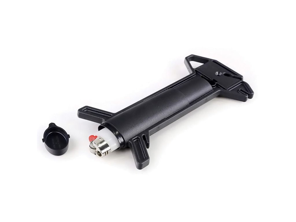 Praktický zásobník - odvíjač šnúry (para šnúry/padákovej šnúry/paracordu alebo akejkoľvek inej). Potrebné množstvo odmotanej šnúry odrežete pomocou integrovaného rezáka. Stred tela odvíjača je dutý a je vhodný na uloženie zapaľovača (nie je súčasťou). Jeho primárna funkcia nie je v tomto prípade zapálenie cigarety, ale zatavenie konca šnúry, aby sa nestrapkala.