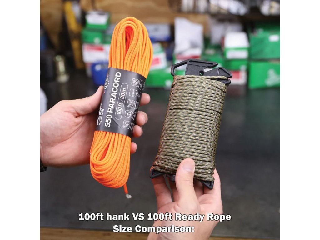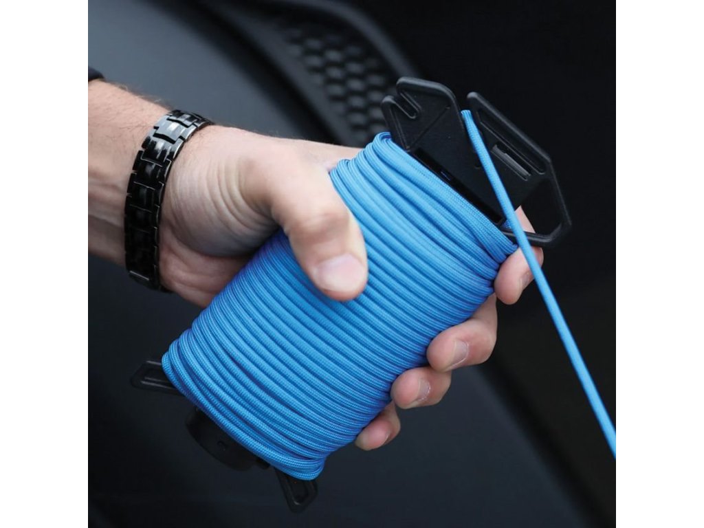 Súčasťou balenia je 30metrový paracord, ktorý zaistíte proti nechcenému odvinutiu umiestnením konca do pripraveného výkroja na zásobníku. Zásobník sa vojde do množstva stehenných vreciek na nohaviciach, prípadne ho môžete zavesiť alebo priviazať kamkoľvek bude potrebné, vďaka pomerne výraznému oku.