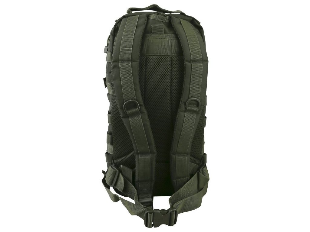 Nosné popruhy batohu sú anatomicky zakrivené, výškovo nastaviteľné, bohato polstrované pomocou 3D sieťoviny a nájdete na nich plastové D krúžky. Bedrák batohu je tvorený jednoduchým popruhom, ktorý je spínaný plastovou FASTEX prackou a je dĺžkovo nastaviteľný. Zadná časť je tiež polstrovaná a obsahuje priehradku na hydratačný vak. Na bokoch batohu sa nachádza MOLLE/PALS väzba perfektná na pripevnenie dodatočného kompatibilného vybavenia. Okrem väzby na bokoch nájdete aj dvojicu kompresných popruhov spínaných plastovou prackou.