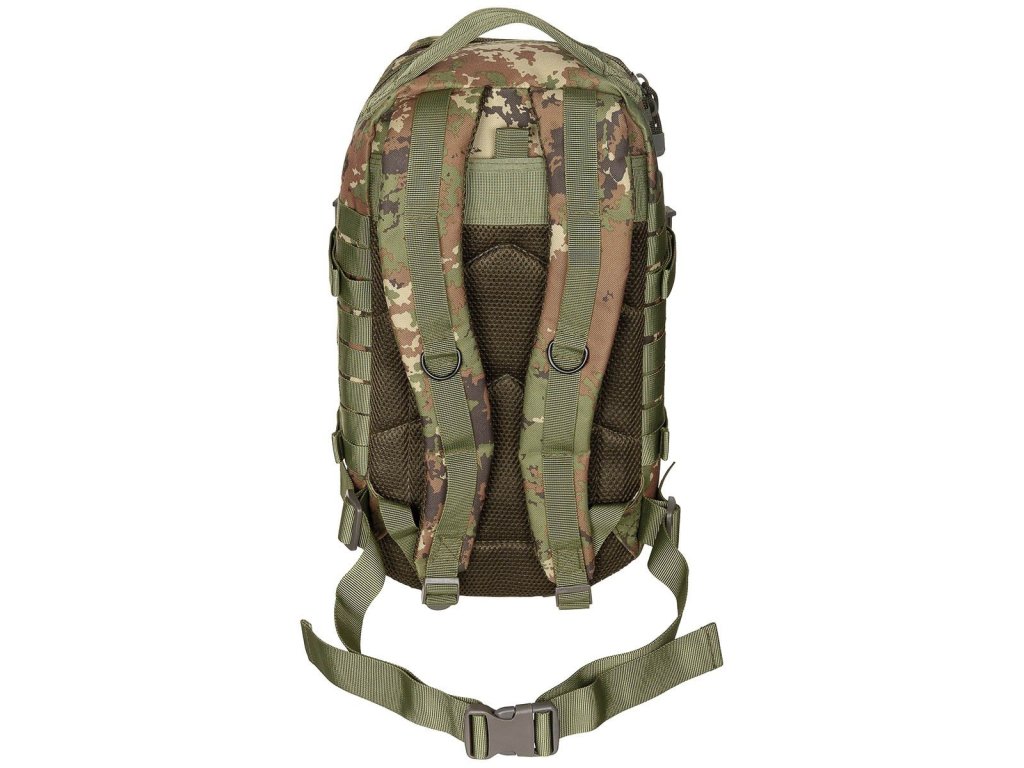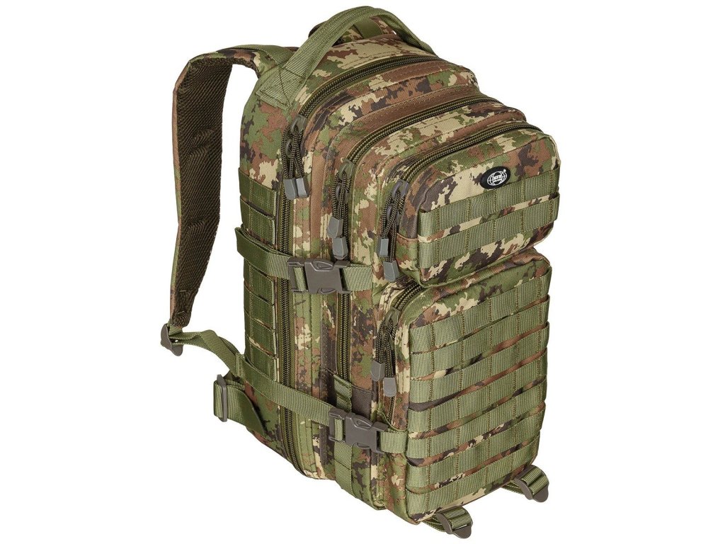 Batoh ASSALUT je odolný proti vode s objemom 30 l. Všetky priestory sú uzavreté robustným 2-pásmovým zipsom. Ergonomicky tvarované ramenné popruhy sú polstrované a nastaviteľné. Polstrovaný chrbát s nastaviteľným popruhom okolo pása. Vďaka radu bočných kompresných popruhov dáva možnosť pripojiť ďalšie zariadenia prostredníctvom nylonových popruhov MOLLE a D-krúžkov. Batoh je ideálny pre vojenstvo, táborenie aj turistiku.