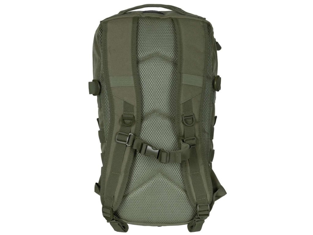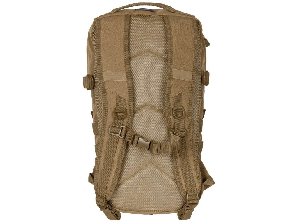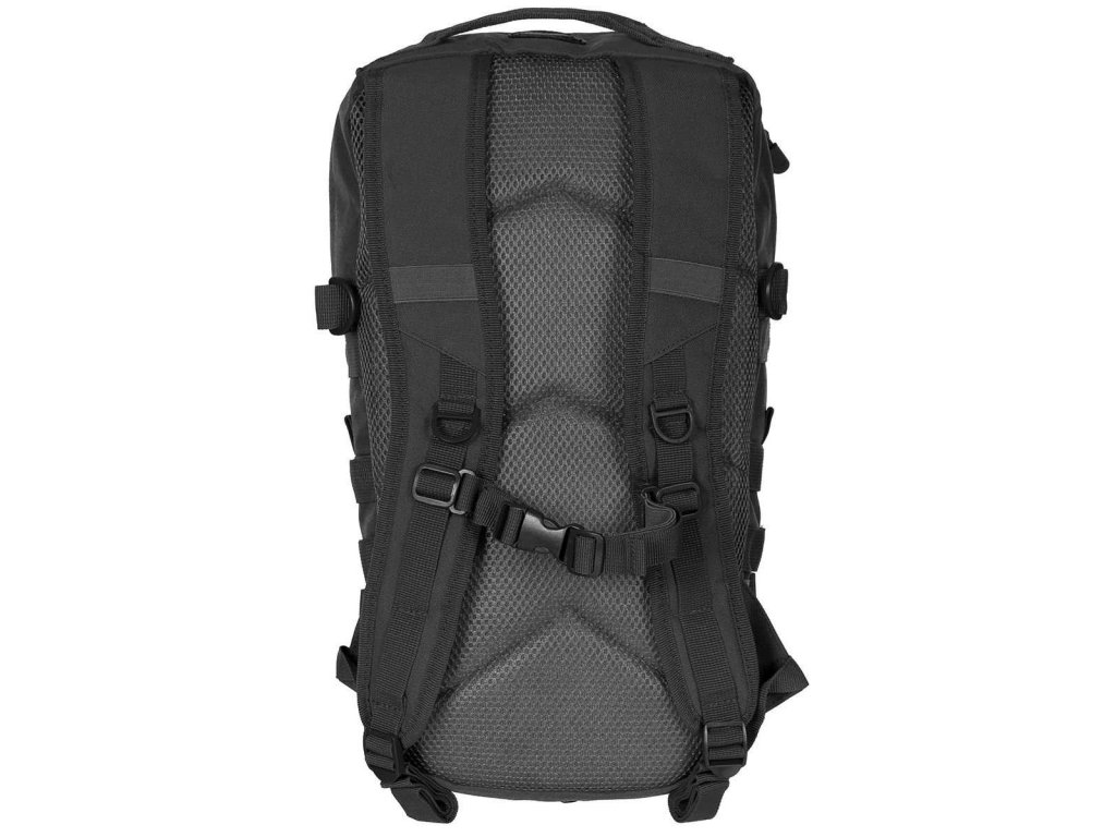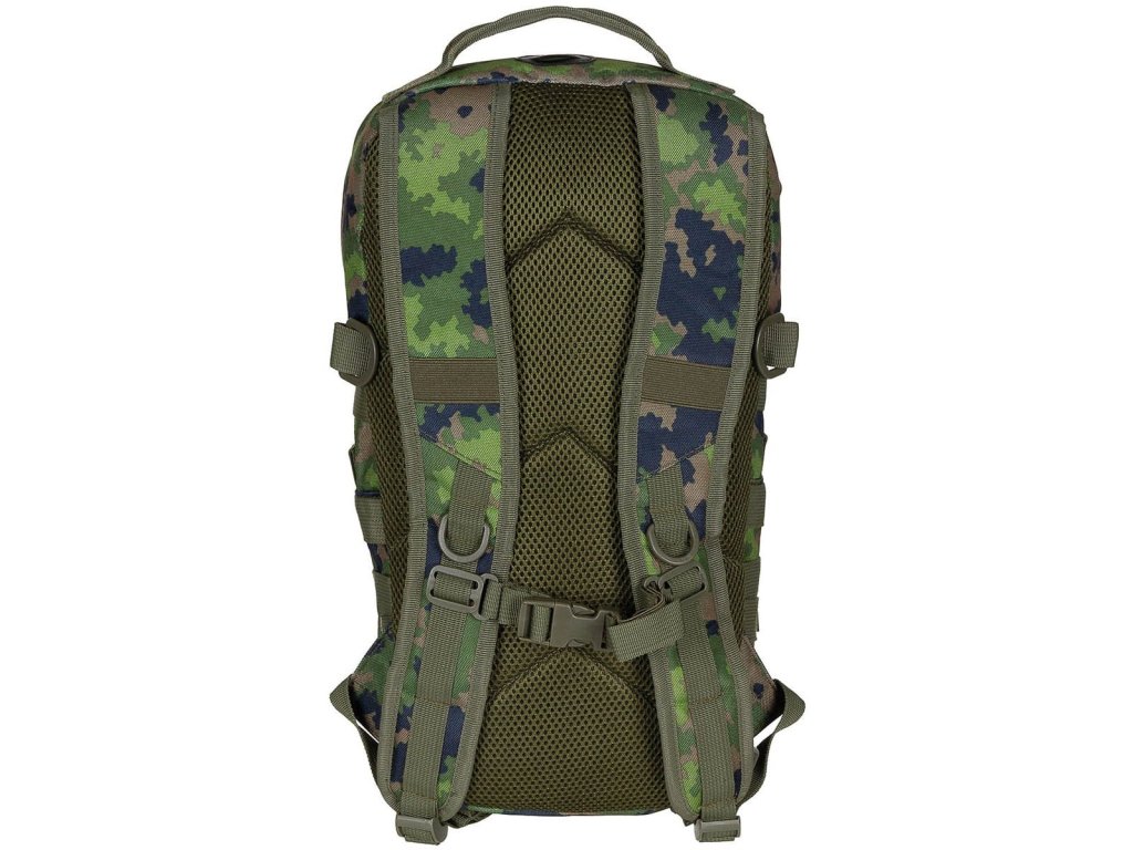 Ramenné popruhy sú dĺžkovo nastaviteľné, ľahko polstrované, vybavené prievlakmi na hadičku hydratačného vaku, plastovými D krúžkami a výškovo nastaviteľným hrudným popruhom, ktorý je spínaný pomocou plastovej fastex pracky. Chrbát je polstrovaný pomocou 3D sieťoviny. Na dobrej strane sa nachádza jednoduché prenášacie madlo. Na bokoch sa nachádzajú štyri rady MOLLE/PALS väzby, malé vrecko uzatvárané pomocou suchého zipsu a dvojica kompresných popruhov spínaných plastovou prackou. Na prednej časti batohu nájdete ďalšiu modulárnu väzbu a malý panel suchého zipsu pre vaše VELCRO nášivky. Interiér batohu je prístupný cez dvojcestný zips vybavený tiahlami. Vnútri sa nachádza priehradka na hydratačný vak, fixačné pútko a otvor na prevlečenie hadičky.
