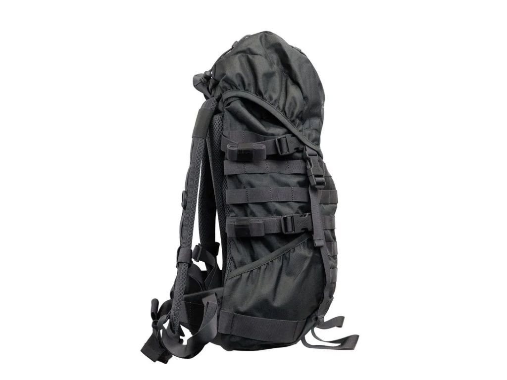 Rokmi preverená klasika medzi vojenskými batohmi s horným plnením, tentoraz v civilnom šedom prevedení, doplnená o logo Wiley X. Objem 30 litrov je dostatočný pre jedno- až dvojdňové použitie, batoh poslúži aj ako grab-bag do väčšej krosny. Chrbtový systém s ergonomickými popruhmi využíva polstrovanie Coolmesh, hlavná komora so sťahovacím golierom disponuje priehradkou a vývodmi pre hydratačný vak, veko je vybavené integrovaným vreckom na drobnosti a elastickým šnurovaním na prevlečenie napr. vetrovky. Bočné vrecká v kombinácii s kompresnými popruhmi a PALS/MOLLE väzba prakticky po celom obvode batohu umožňujú pripevnenie ďalšieho vybavenia a zvýšenie nosnej kapacity batohu.