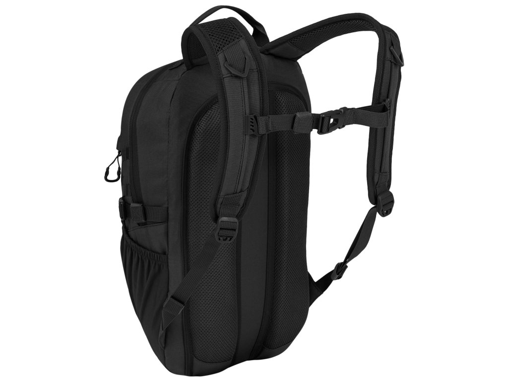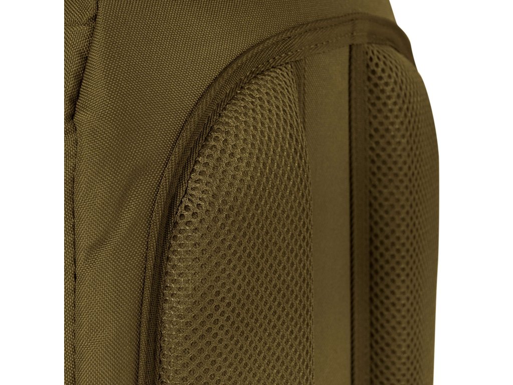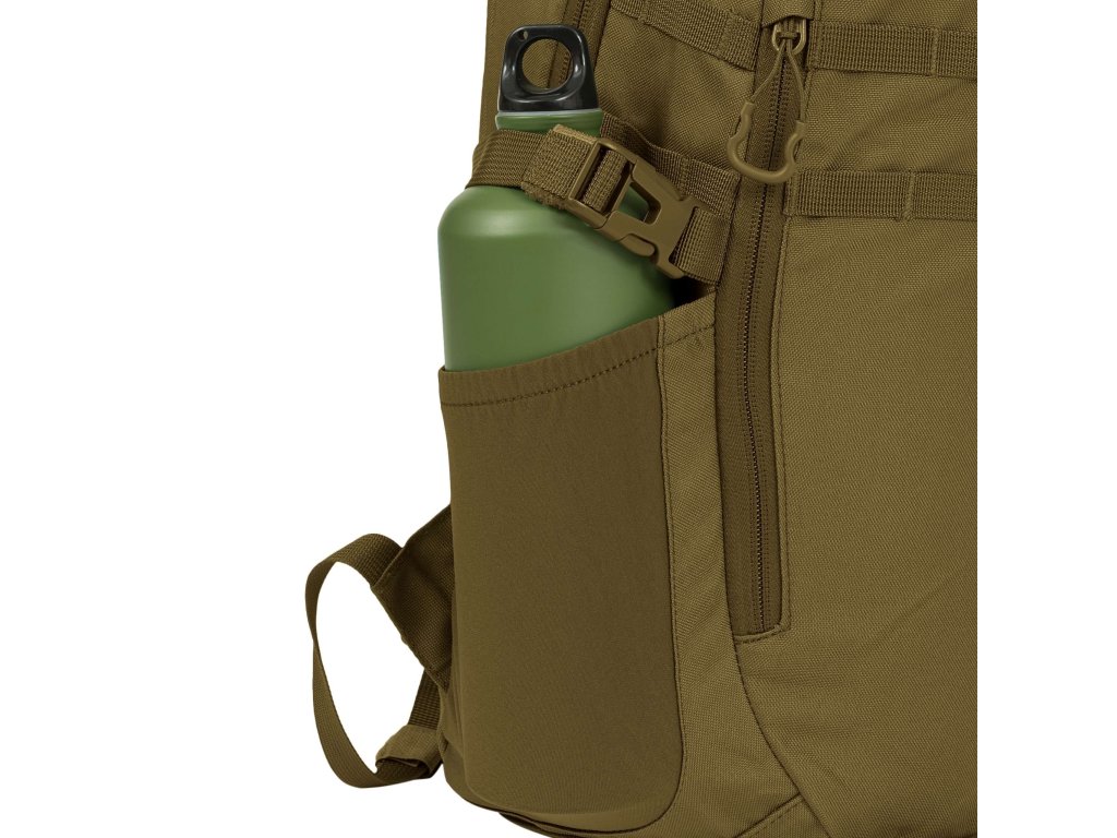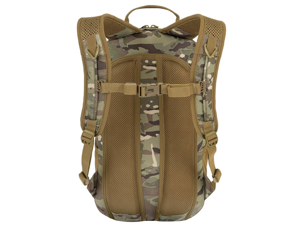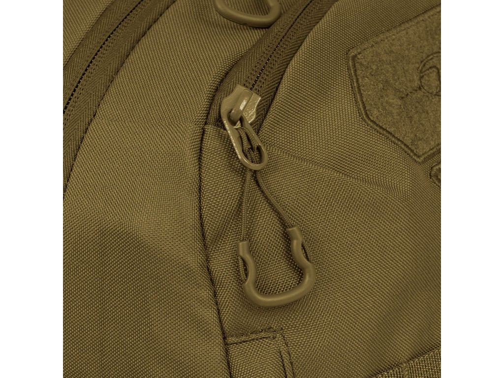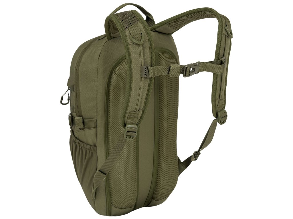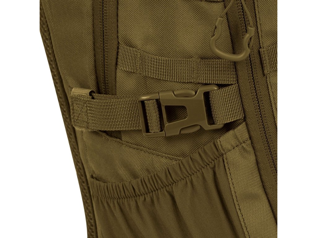 Chrbát plecniaka je bohato polstrovaný pomocou 3D sieťoviny, ktorej tvar zachováva stredový kanálik zlepšujúci odvetrávanie. Nosné popruhy sú nastaviteľné, polstrované, disponujú stabilizačnými popruhmi, plastovými trianglami a výškovo nastaviteľným elastickým hrudným popruhom, ktorý je spínaný plastovou prackou. Na bokoch batohu nájdete dva rady redukovanej MOLLE/PALS väzby, kompresné popruhy spínané plastovou prackou a elastické vrecká. Predná časť batohu je vybavená dvoma pruhmi MOLLE/PALS väzby, priestrannou stredovou priehradkou, vrchným vreckom a dvoma VELCRO panelmi.